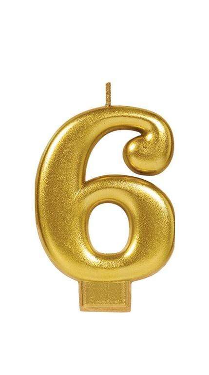 Numeral Metallic Gold #6 Candle 8cm Each | Online Party Store | Birthday Candles