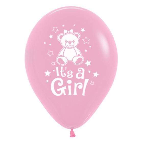 Sempertex 30cm It's A Girl Teddy Fashion Pink Latex Balloons, 25PK, Latex Balloon. 90% biodegradable within 2 years., 30cm when inflated, 25 Pack