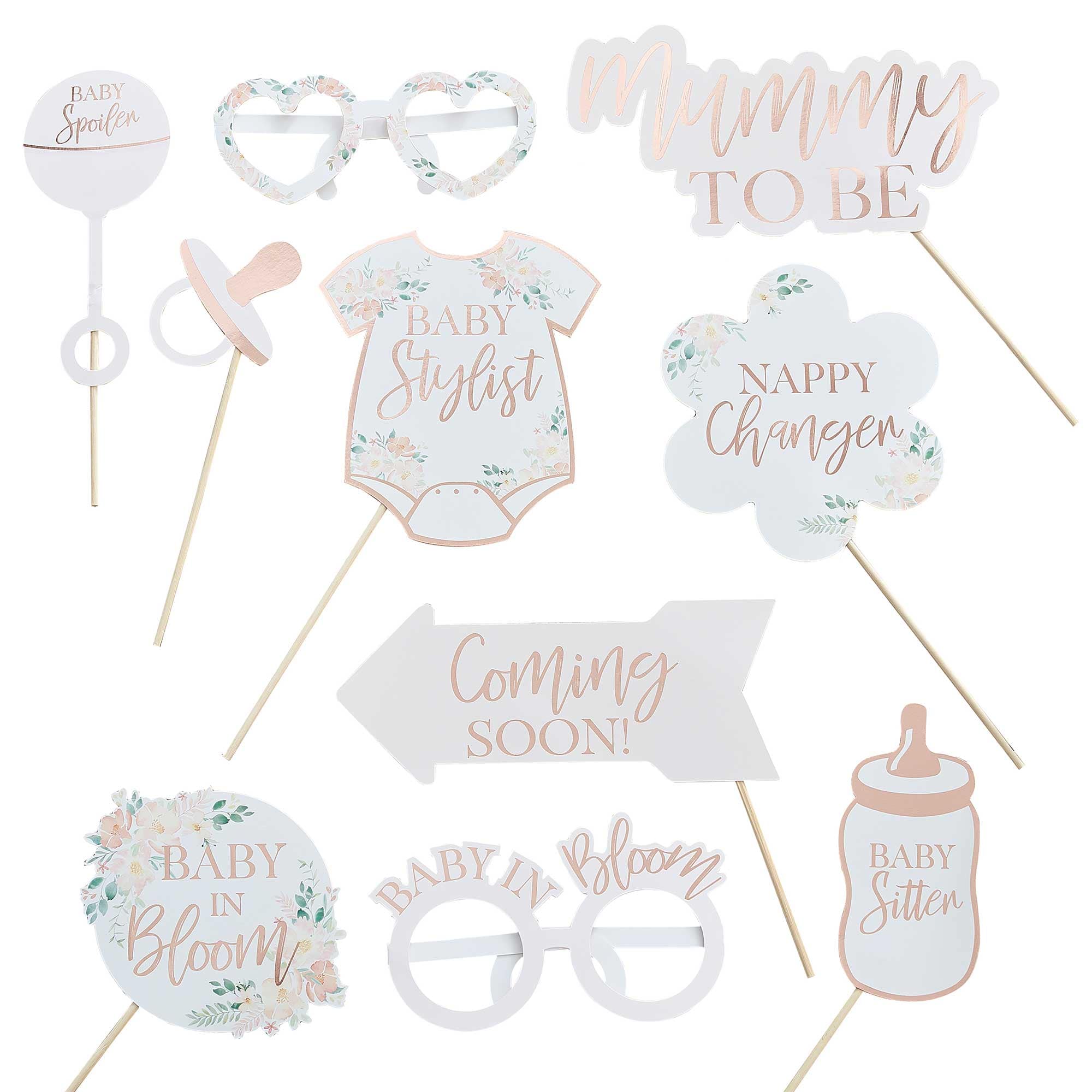 Baby in Bloom Foiled Photobooth Props Rose Gold 10pk