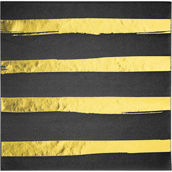 Touch of Colour Black Velvet & Gold Foil Striped Lunch Napkins 33cm x 33cm 16pk