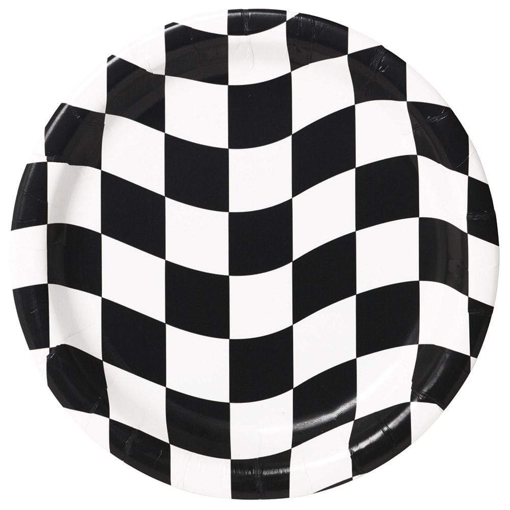 Black & White Check Dinner Plates Paper 22cm 8pk | Online Party Store | Checkered Party Supplies