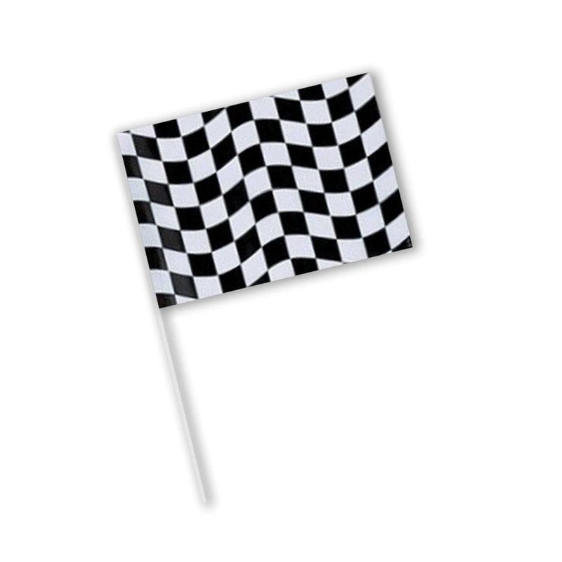 Black & White Check Flag Plastic 15cm x 24cm Each | Online Party Store | Checkered Party Supplies