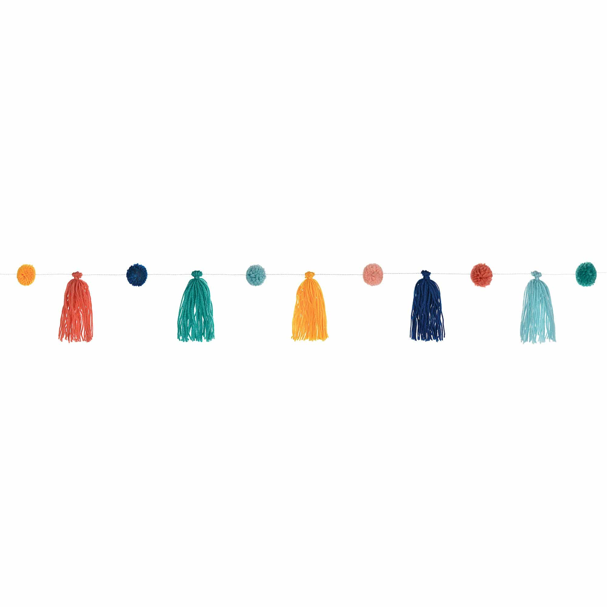 Boho Vibes Yarn Pom Pom Garland 11cm x 3.29m Each Each | Online Party Store | Summer Luau Party Supplies | Summer Luau Decorations