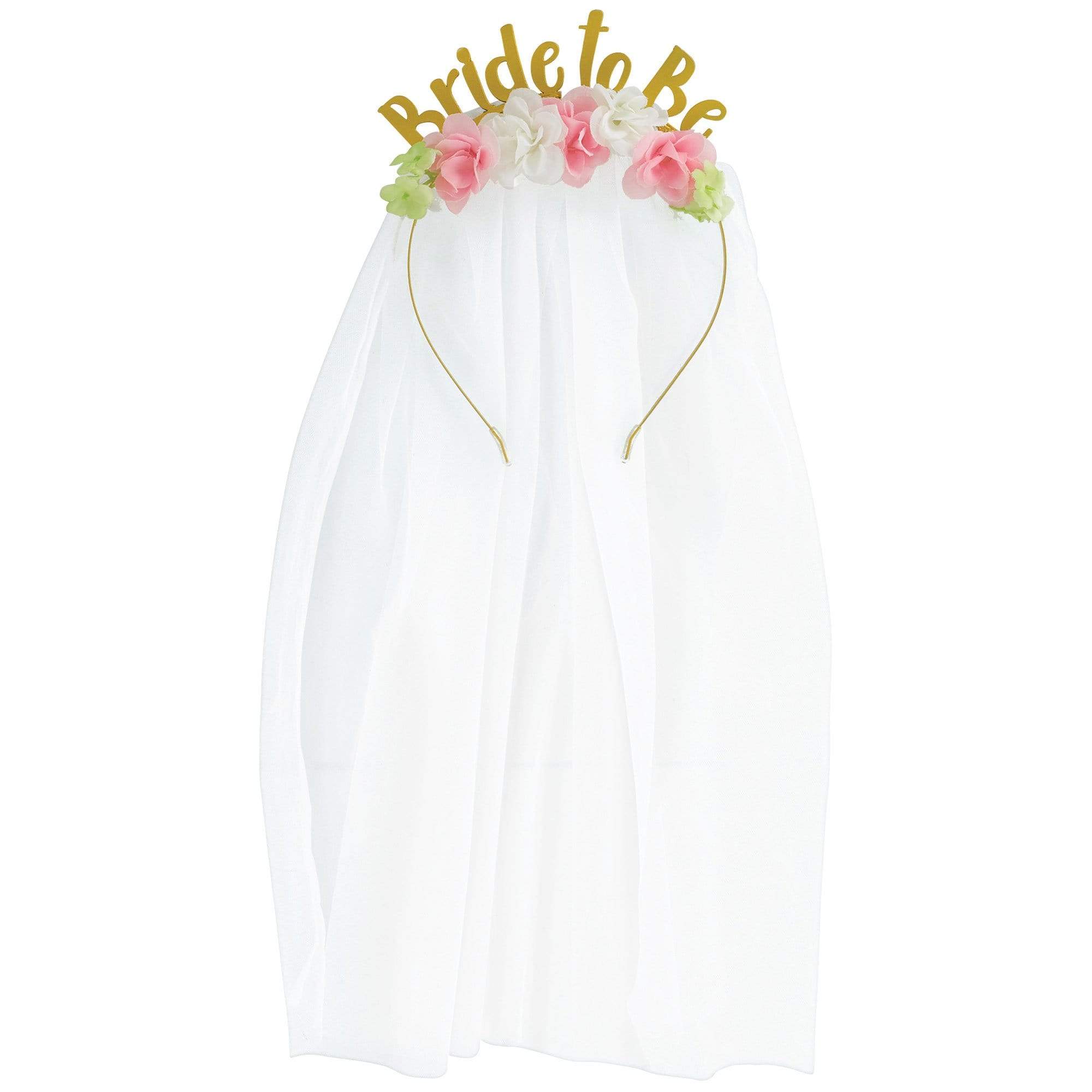 Bride To Be Gold Metal Headband & Veil with Flowers, Veil, 13 1/2in long , Plastic, Plastic