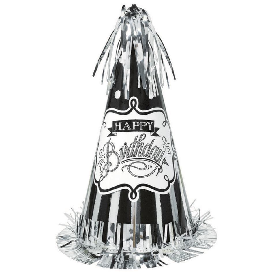 Chalkboard Birthday Large Cone Hat with Foil Fringe 33cm Each | Online Party Store | Chalkboard Birthday Party Supplies
