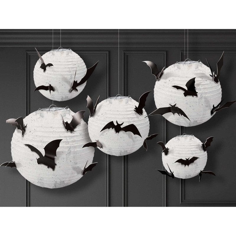 Classic Halloween Black & White Paper Lanterns with Bat Add Ons 5pk