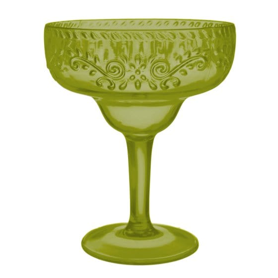 Premium Embossed Olive Green Floral Margarita Glass, Capacity: 561ml, Made from reusable hard plastic, Not suitable for dishwasher