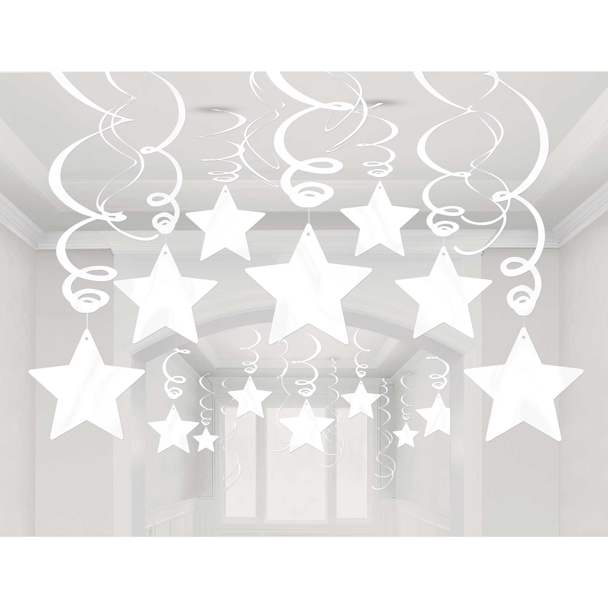 Frosty White Shooting Stars Plastic Mega Value Pack Swirl Decorations 30pk | Online Party Store | Shooting Stars Swirl Decorations