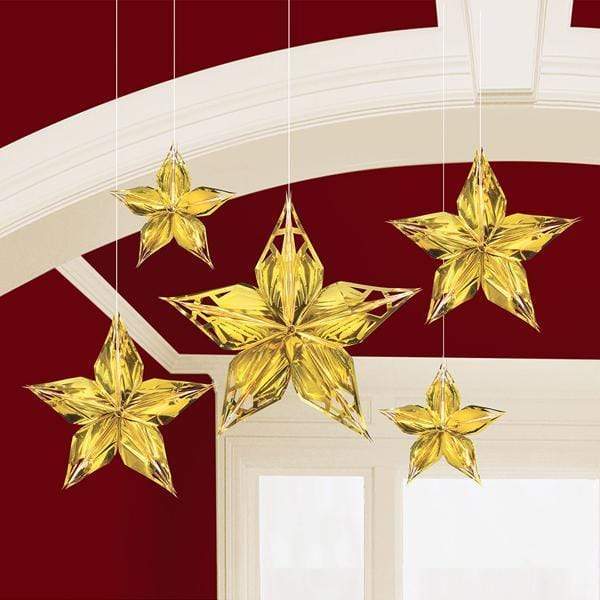 Glitz & Glam Metallic Gold Stars Hanging Decorations, Foil Contains: 1 Piece 40.6cm / 16in 2 Pieces 30.4cm / 12in 2 Pieces 20.3cm / 8in