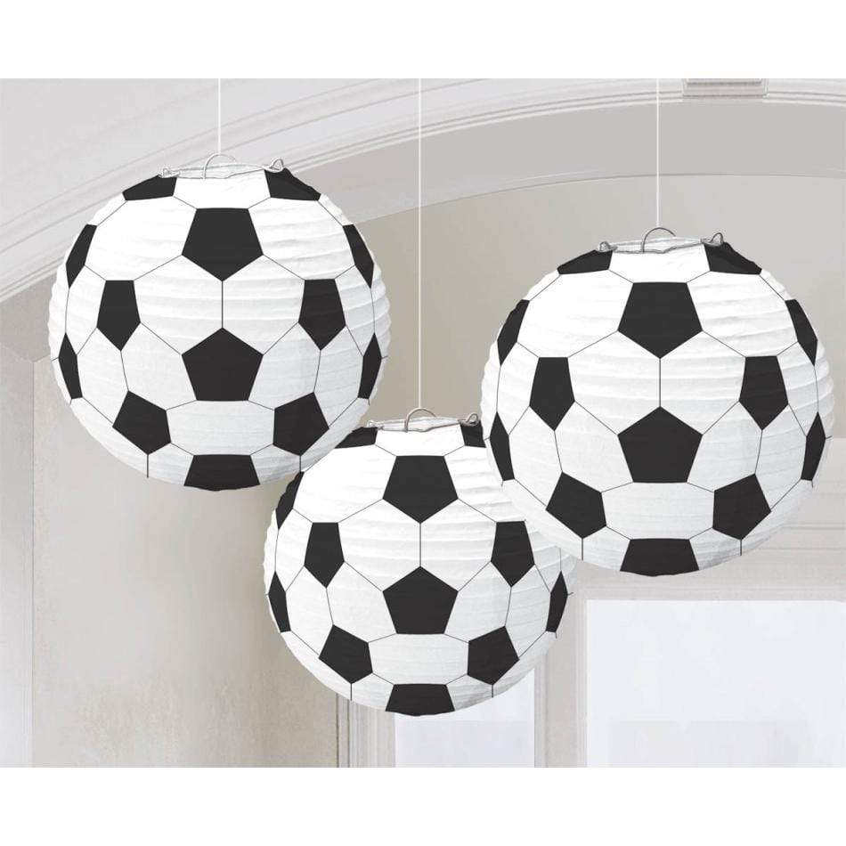 Goal Getter Soccer Fan Paper Lanterns 24cm 3pk | Online Party Store | Soccer Fan Party Supplies