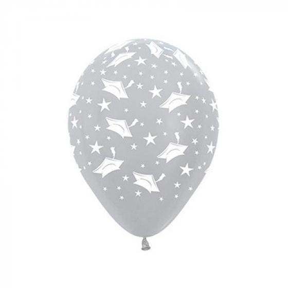 Sempertex 30cm Graduation Hats & Stars Satin Pearl Silver Latex Balloons, 12PK, Latex Balloon. 90% biodegradable within 2 years., 30cm when inflated, 12 Pack