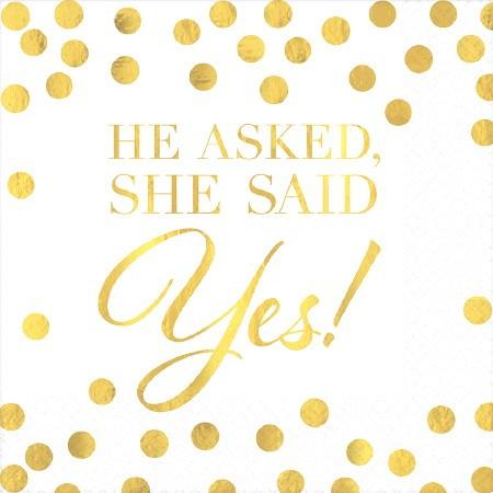 He Asked Foil Hot-Stamped Beverage Napkins 16pk | Online Party Store | Mint to Be Party Supplies