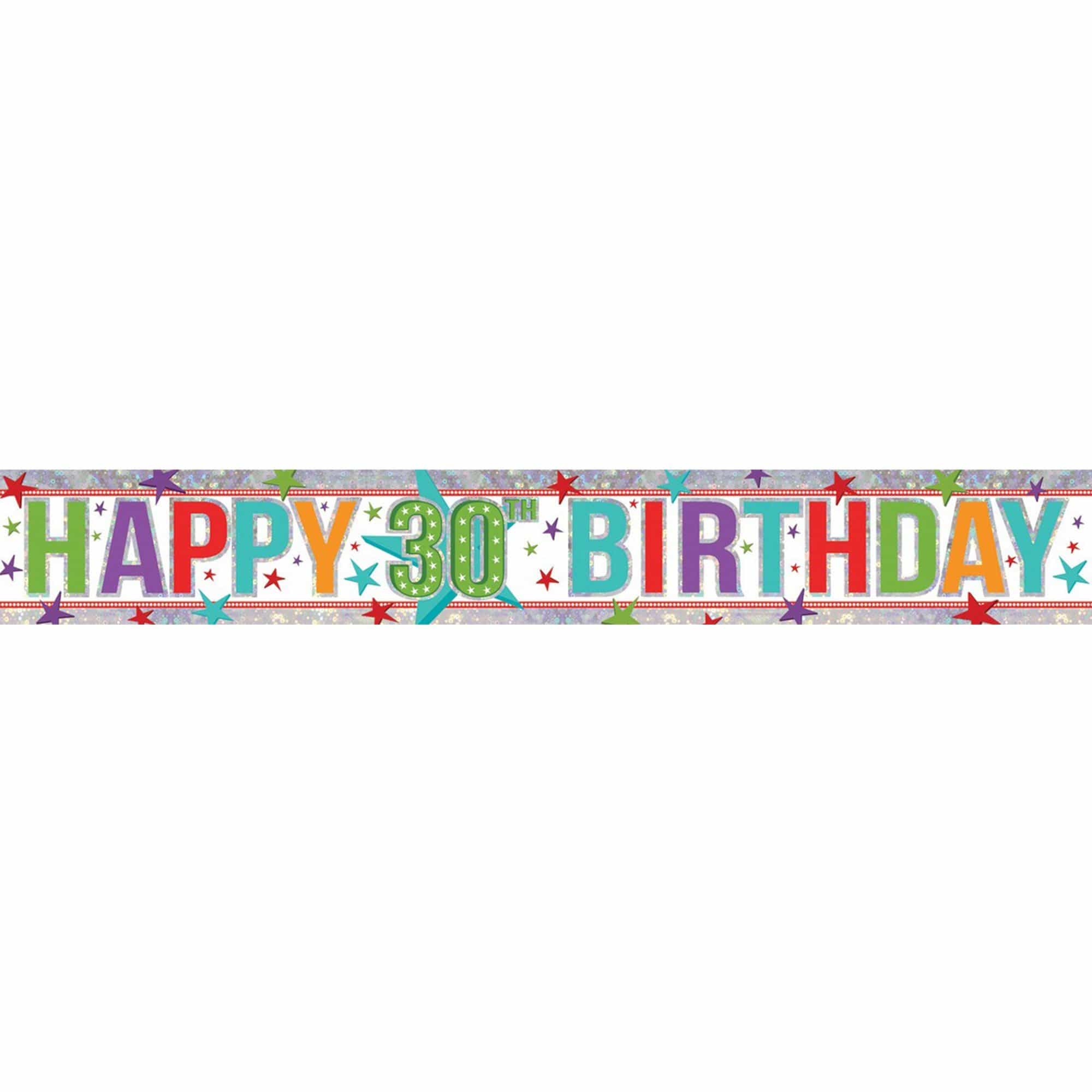 Holographic Happy Birthday 30th Multi-Coloured Banner 2.7m Each | Online Party Store | 30th Birthday Party Supplies