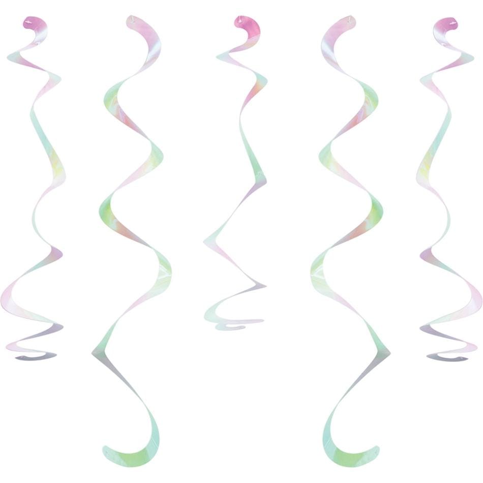 Iridescent Foil Dizzy Danglers Hanging Swirls 10pk | Online Party Store | Iridescent Coloured Decorations