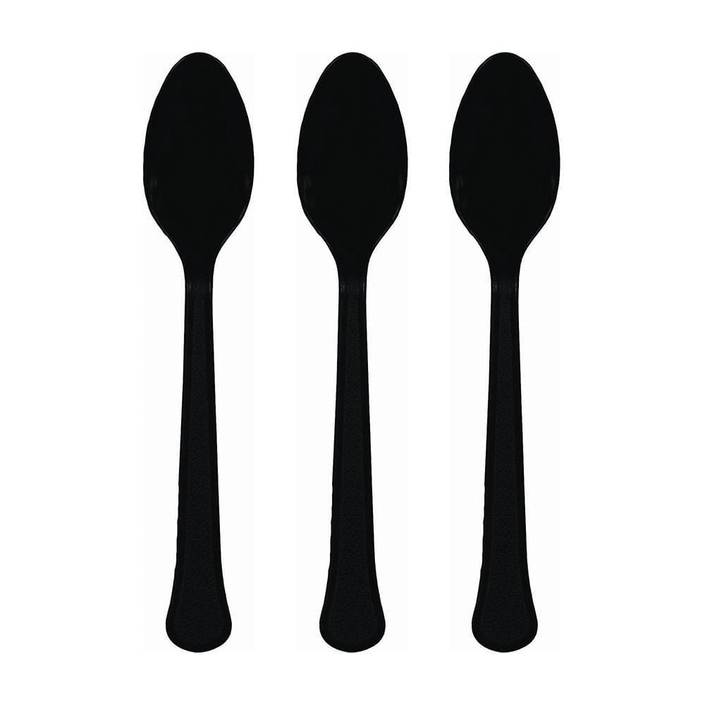 Jet Black Premium Plastic Spoons 20pk | Online Party Store | Jet Black Solid Colour Plastic Tableware