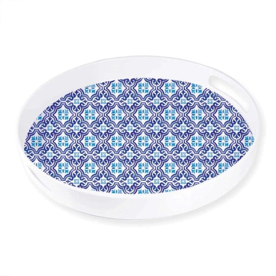 Mediterranean Melamine Tray With Handle 34.5cm x 4.5cm Each