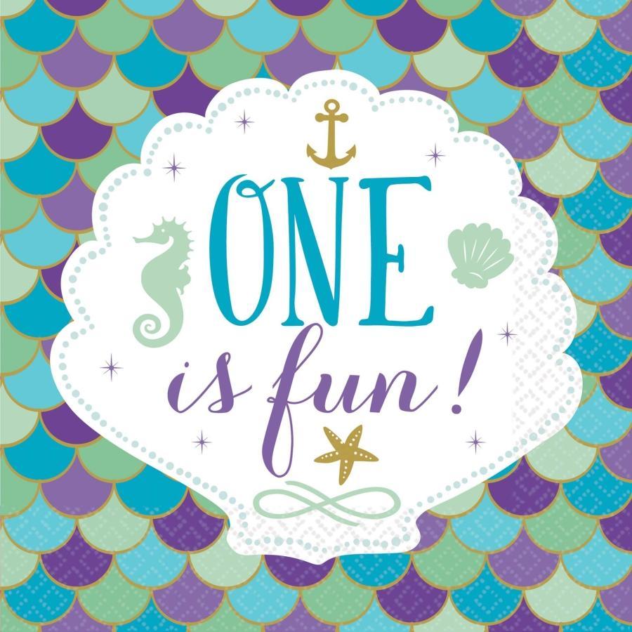 Mermaid 1st Birthday Lunch Napkins 33cm x 33cm 2-ply paper 16 per package