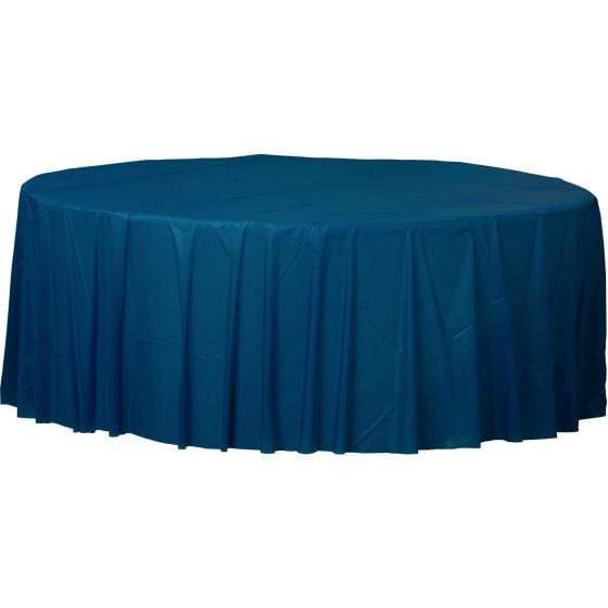 Navy Flag Blue Plastic Round Tablecover 2.1m Each | Online Party Store | Navy Flag Blue Solid Colour Plastic Tableware