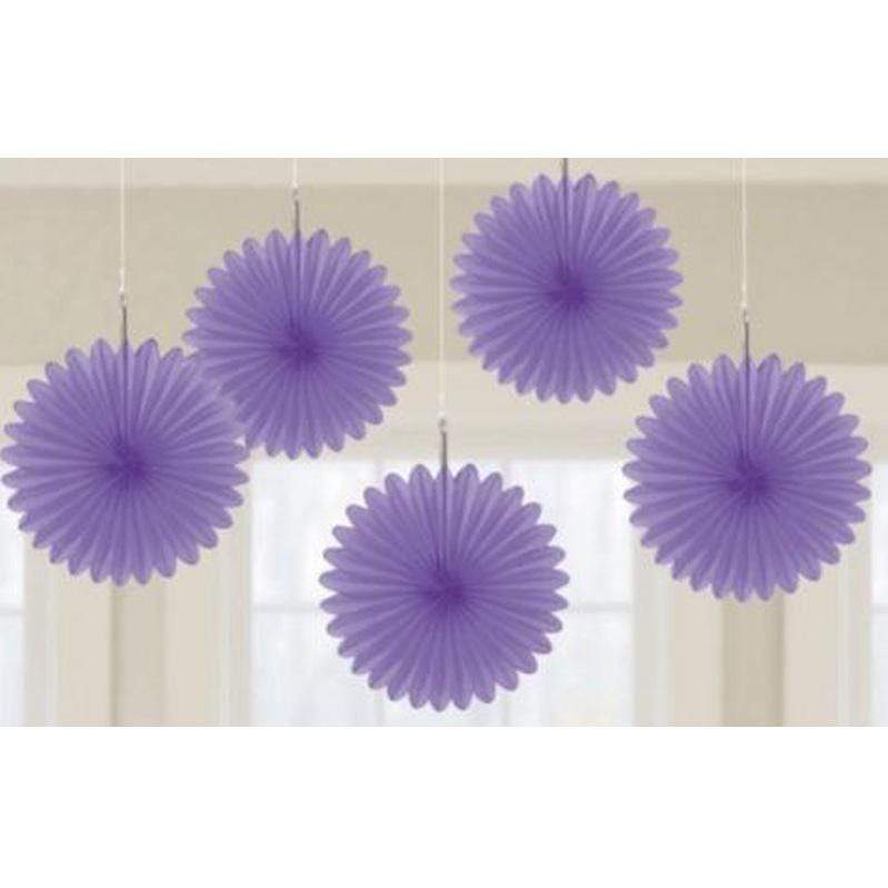 New Purple Mini Fan Decorations 6in 5pk | Online Party Store | New Purple Coloured Decorations