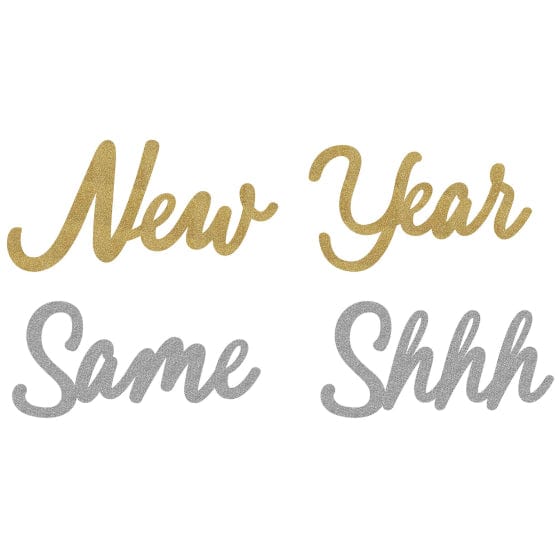 New Year Same Shhh Glittered Large Cutouts Black, Silver & Gold