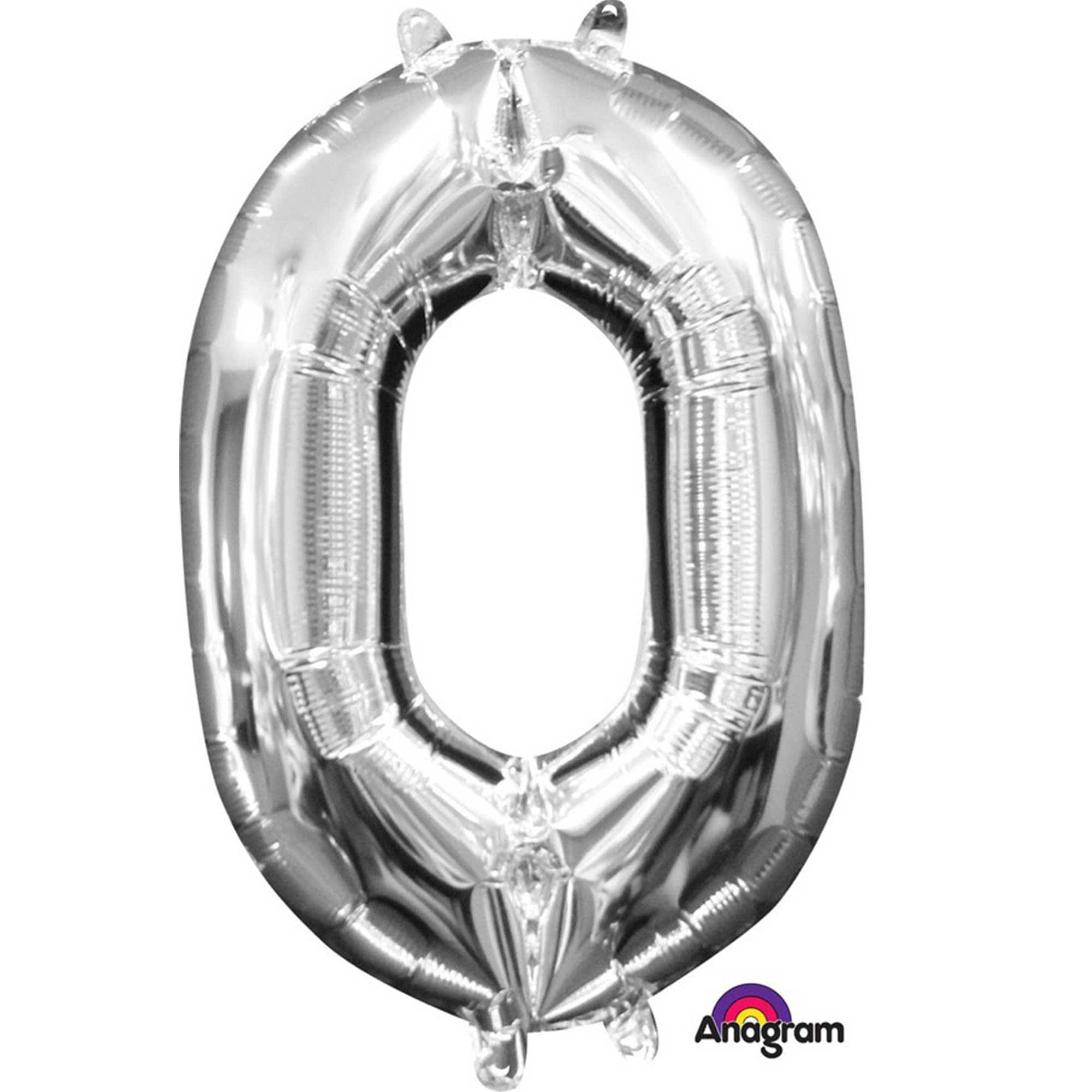 CI: Number 0 Silver L16, 33cm, Self Sealing Foil Balloon , Air Fill only. Not meant for use with helium, will not float. Includes straw