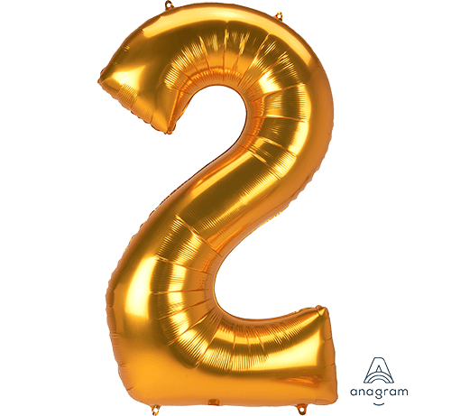 Number 2 Gold Jumbo Supershape Foil Balloon 78cm x 134cm Each