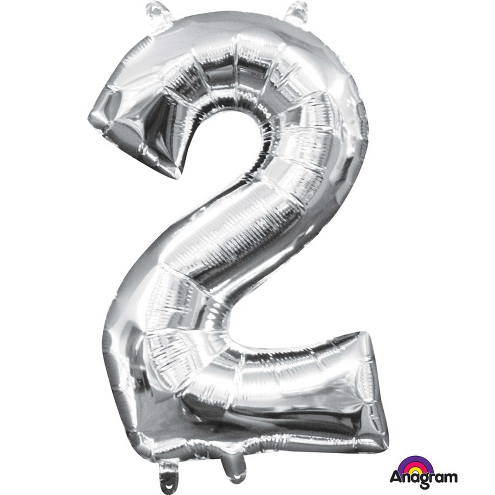 CI: Number 2 Silver L16, 33cm, Self Sealing Foil Balloon , Air Fill only. Not meant for use with helium, will not float. Includes straw