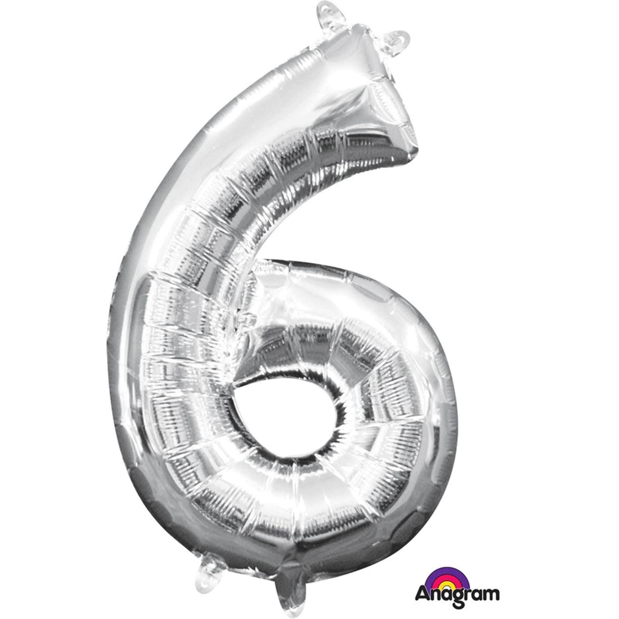 CI: Number 6 Silver L16, 33cm, Self Sealing Foil Balloon , Air Fill only. Not meant for use with helium, will not float. Includes straw