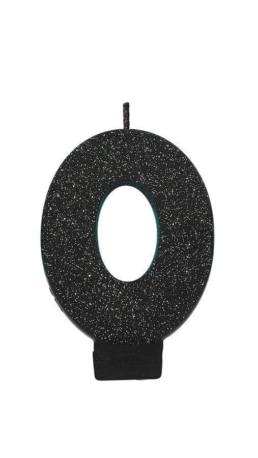 Numeral Glitter Black #0 Candle 8cm Each | Online Party Store | Birthday Candles