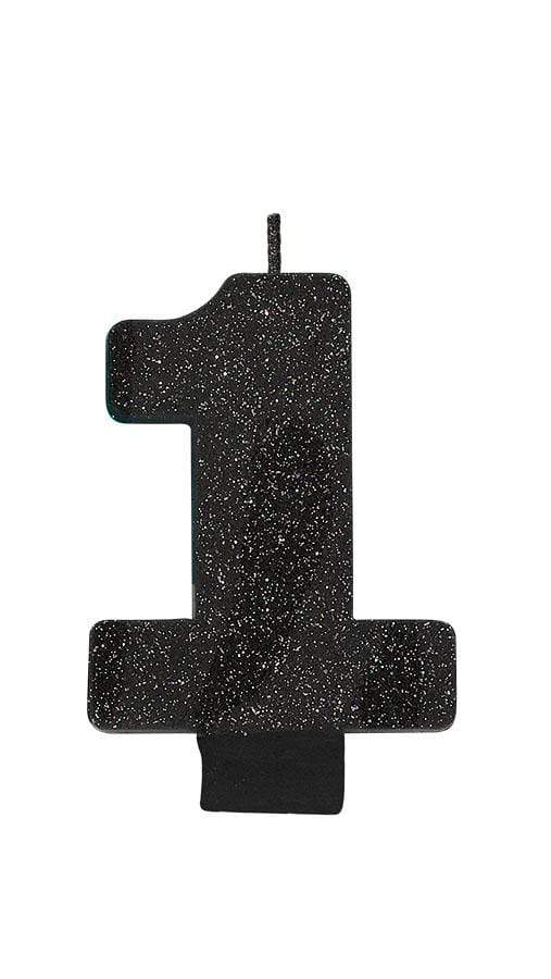 Numeral Glitter Black #1 Candle 8cm Each | Online Party Store | Birthday Candles