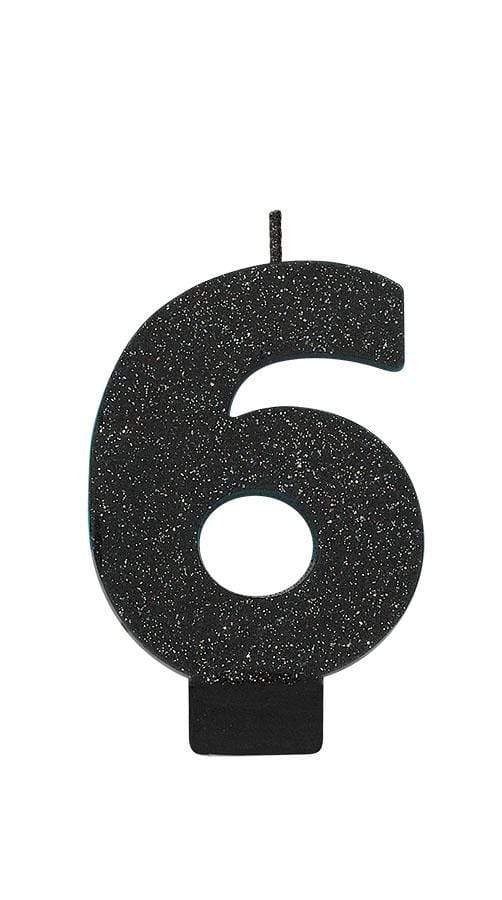 Numeral Glitter Black #6 Candle 8cm Each | Online Party Store | Birthday Candles