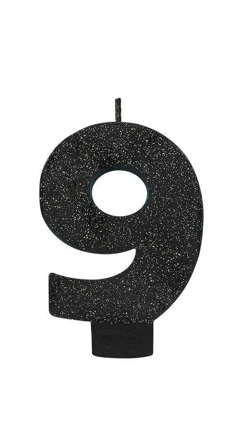 Numeral Glitter Black #9 Candle 8cm Each | Online Party Store | Birthday Candles