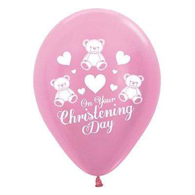 Sempertex 30cm On Your Christening Day Satin Pearl Pink Latex Balloons, 25PK, Latex Balloon. 90% biodegradable within 2 years., 30cm when inflated, 25 Pack