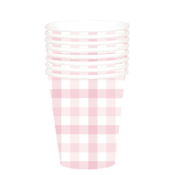 Pastel Pink Gingham HC Paper Cup 266ml 8pk