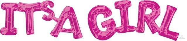 CI: Phrase IT's A GIRL Pink G20, 50cm x 22cm ITS A, 55cm x 25cm GIRL, Self Sealing Foil Balloon & Straw to Inflate , Self Sealing Foil Balloon & Straw to Inflate