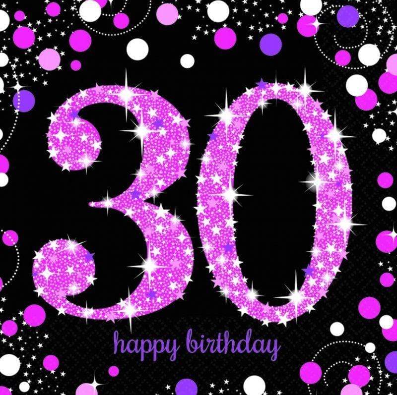 Pink Celebration 30th Lunch Napkins 33cm 16pk
