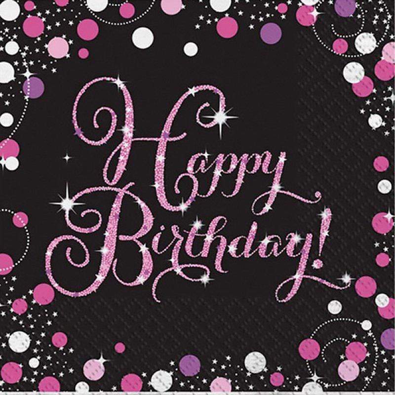 Pink Celebration Happy Birthday Lunch Napkins 33cm 16pk