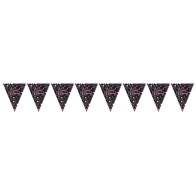 Pink Celebration Happy Birthday Prismatic Pennant Banner - Plastic, 13ft (3.96m), 11 flags 6.5in x 8in (16.6cm x 20.3cm), Plastic