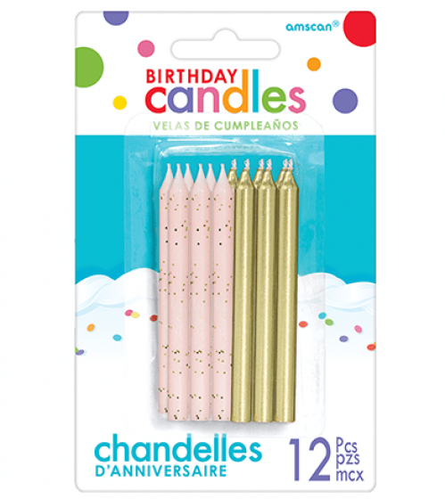 Pink Glittered and Metallic Gold Candles 8cm 12pk | Online Party Store | Birthday Candles