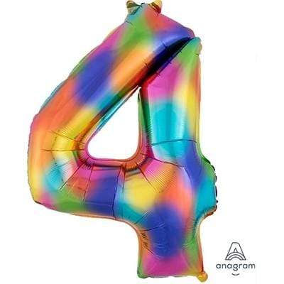Rainbow Splash Numeral 4 Supershape Foil Balloon 86cm Each | Online Party Store | Numbers Foil Balloons