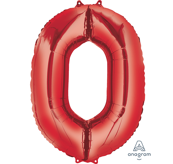 SuperShape Red Numeral 0. L34, 86cm , Self Sealing Foil Balloon, Reusable