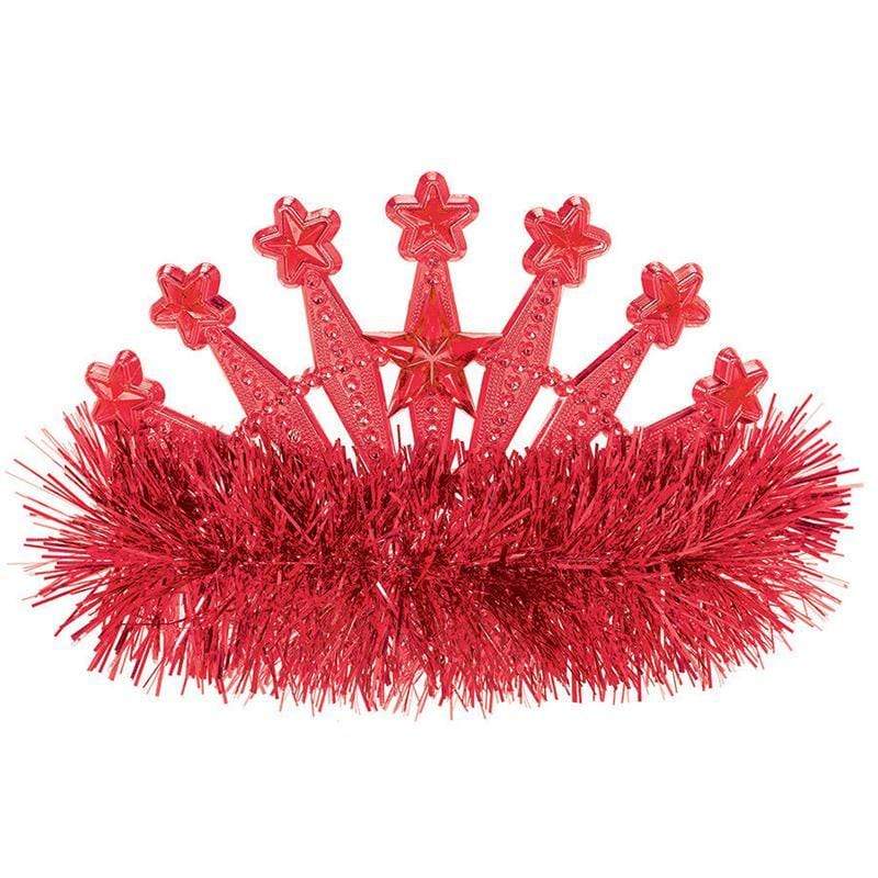 Tiara - Red, Plastic and Tinsel 10cm x 12cm Intended for Adult novelty use only