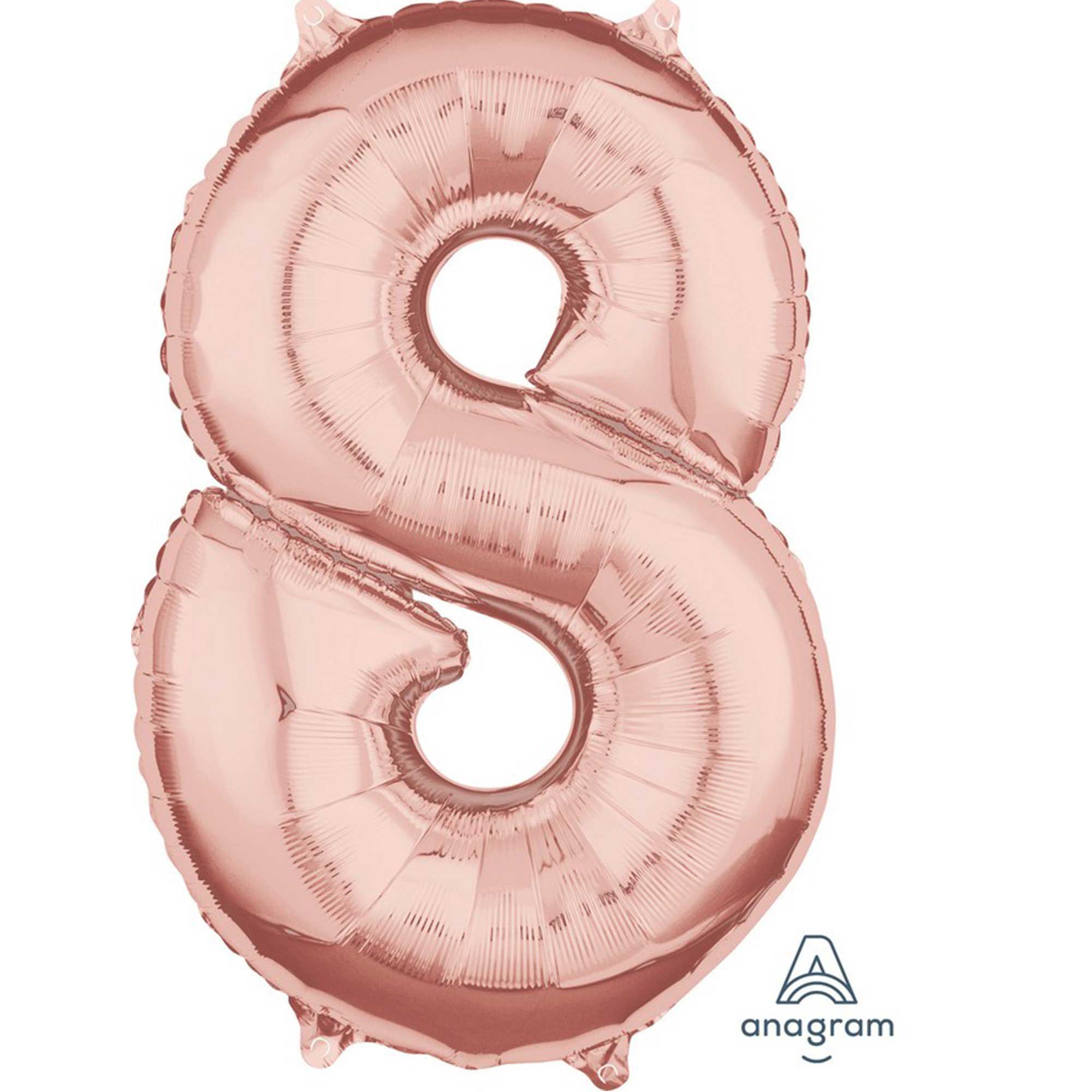 Rose Gold Numeral 8 Mid-Size Shape Foil Balloon Balloon 66cm Each | Online Party Store | Numbers Foil Balloons