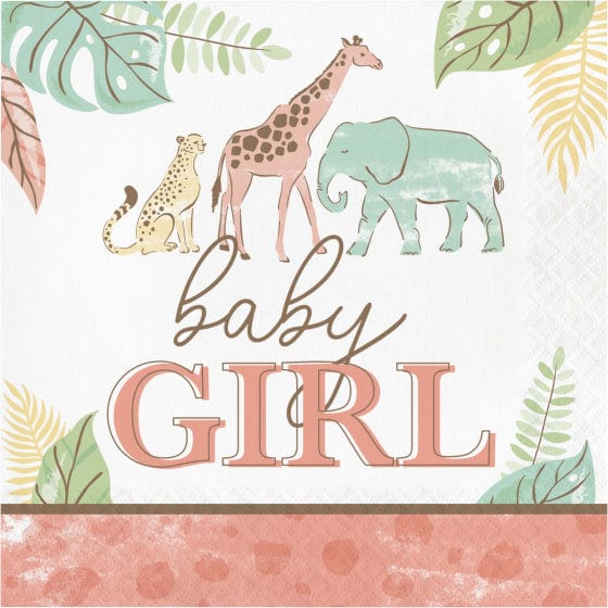 Safari Baby Party Supplies | Safari Baby Girl Lunch Napkin 16pk | Online Party Store