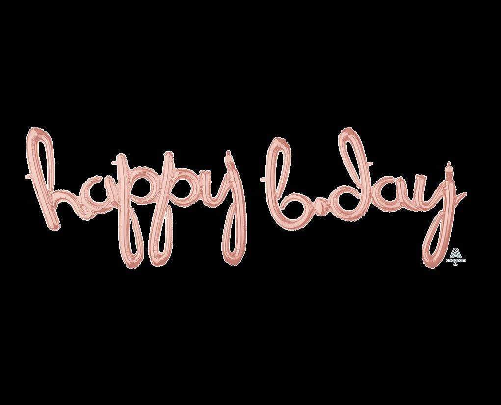 CI: Script Phrases happy bday Rose Gold G50, Self Sealing Foil Balloon. Air Fill Only Self Sealing Foil Balloon. Air Fill Only