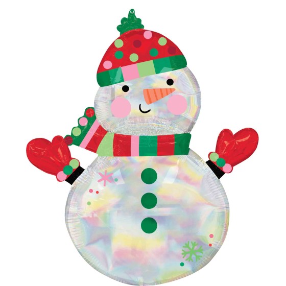 Christmas Party Supplies | Shimmering Iridescent Snowman SuperShape Foil Balloon | Online Party Store