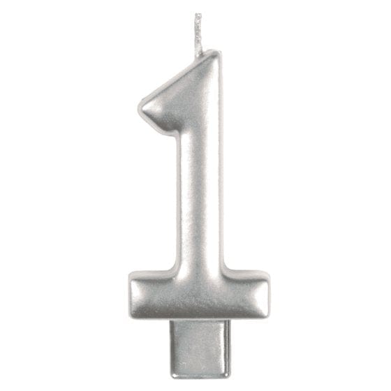 Silver #1 Numeral Moulded Candle 8cm Each
