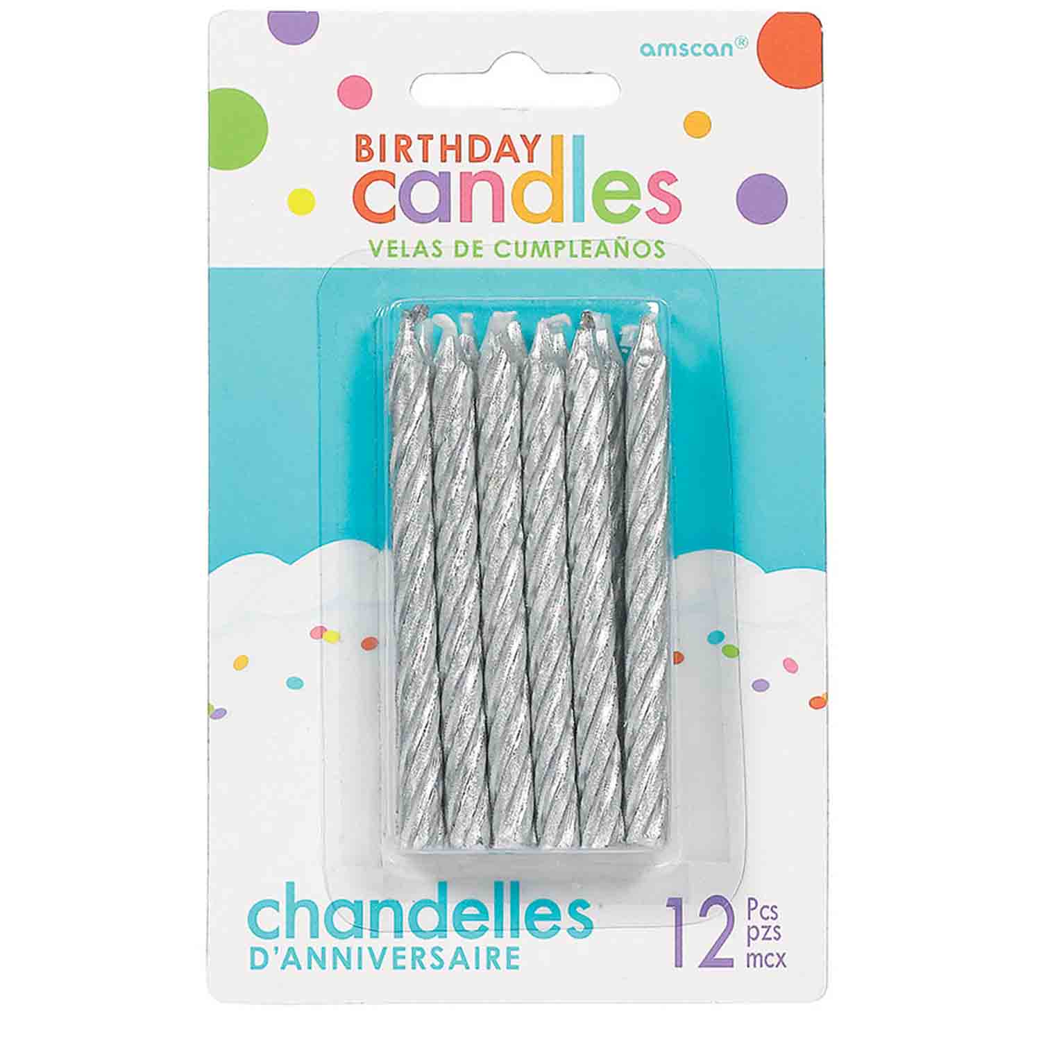 Silver Birthday Candles Large Spiral Glitter 8cm 12pk | Online Party Store | Birthday Candles