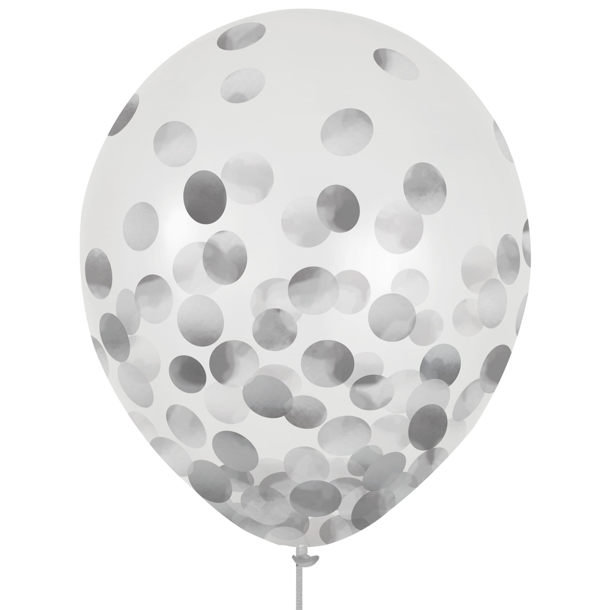 Silver Confetti Latex Balloon 30cm 6pk | Online Party Store | Confetti Latex Balloons