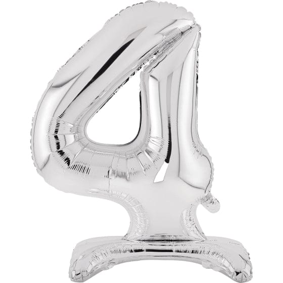 Silver Large Number 4 Air Filled Standing Foil Balloon 76cm Each